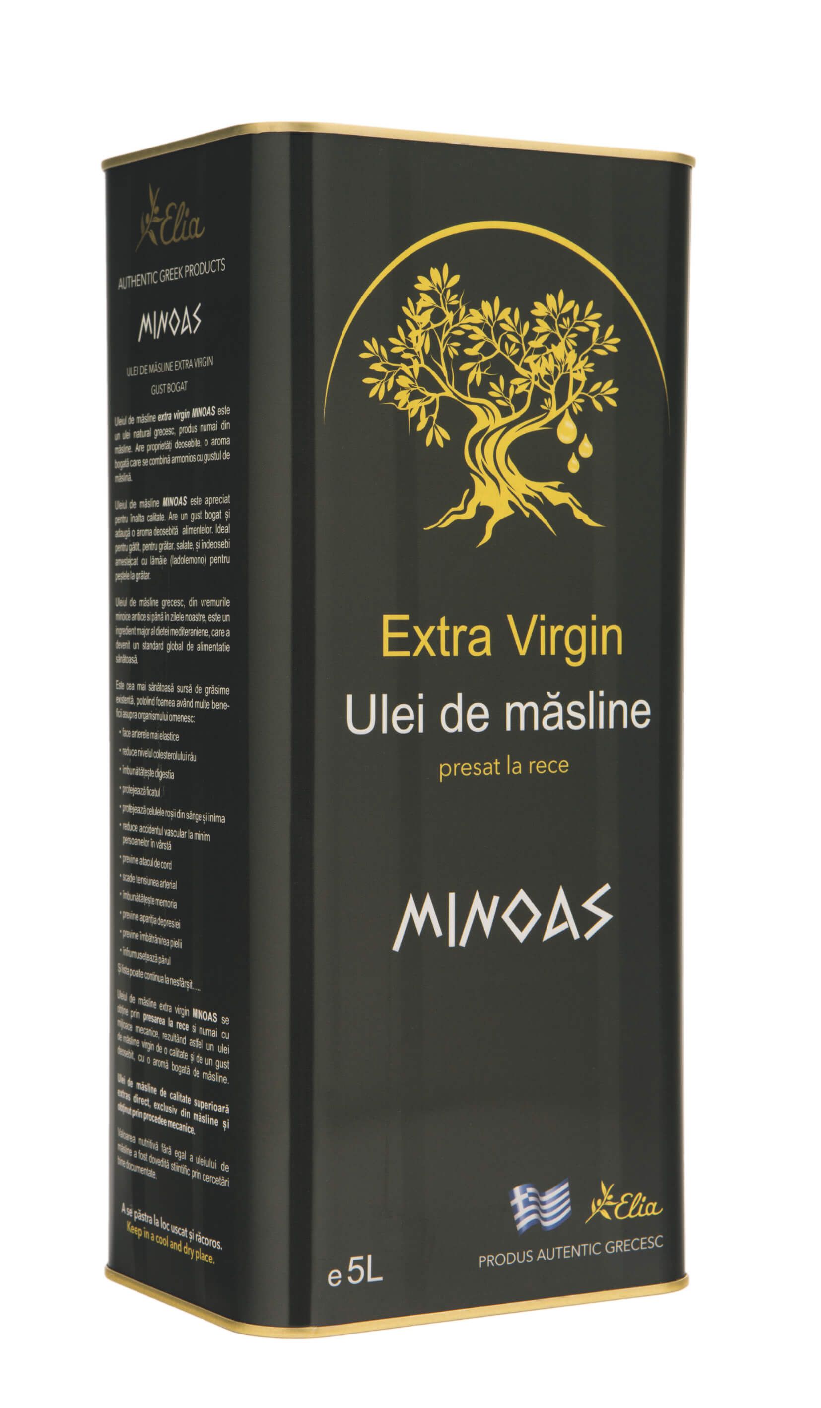 "Minoas" virgin olive oil is obtained by cold pressing with mechanical means, resulting in a virgin olive oil of a special quality and taste, with a rich olive aroma. It has a rich taste and adds a special flavour to food and especially salads. This oil can also be used for cooking, except for frying over high heat.
